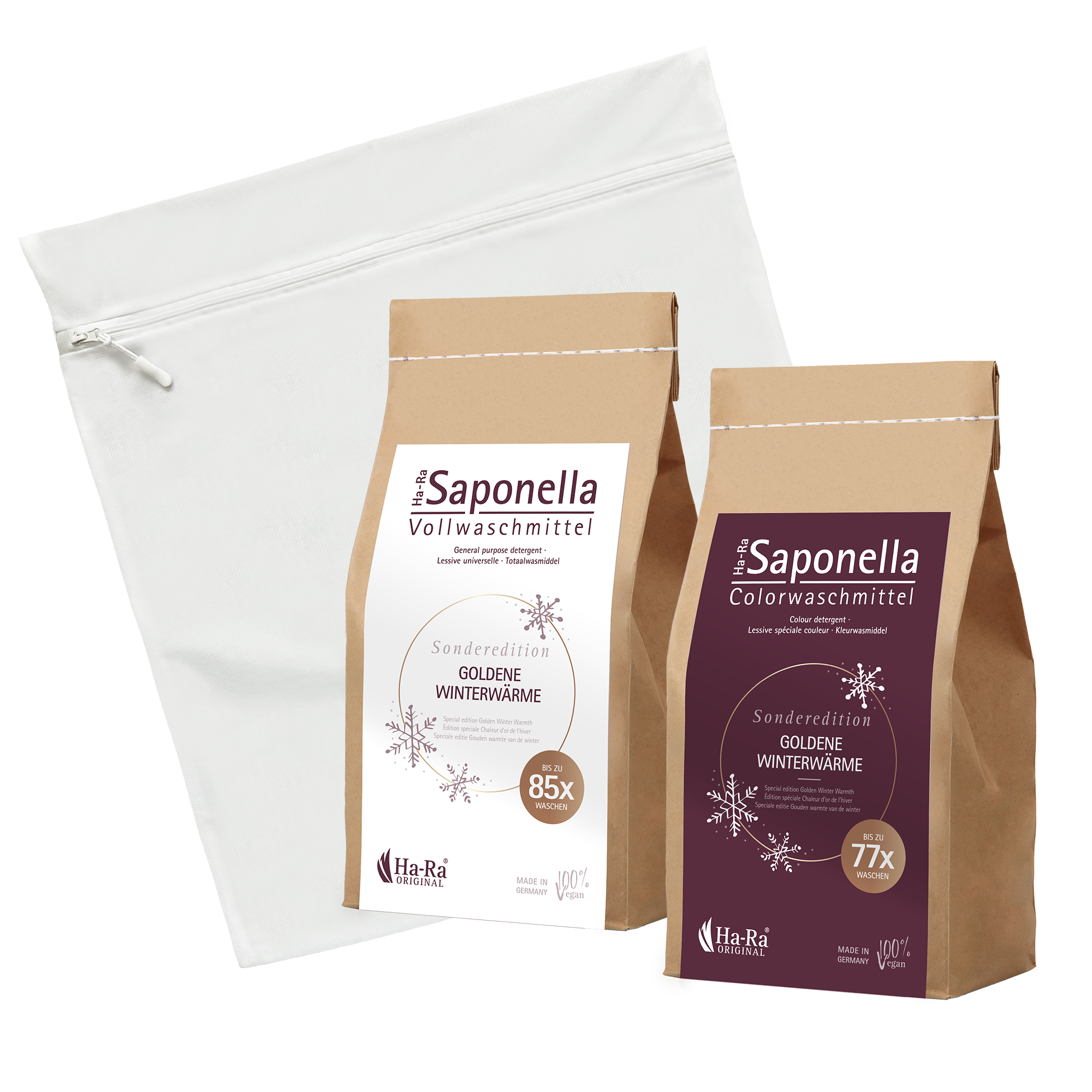 In de set ontvang je bovendien onze Ha-Ra waszak om je wasgoed te beschermen.